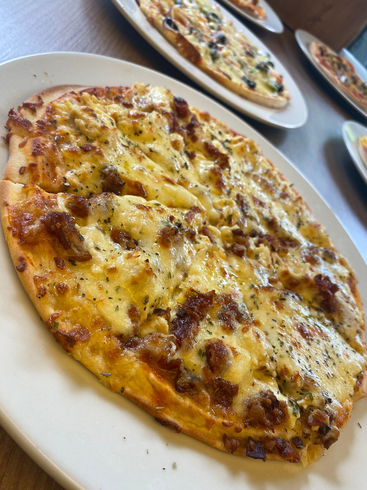 Salsa napolitana, pollo, queso mozzarella y miel mostaza.